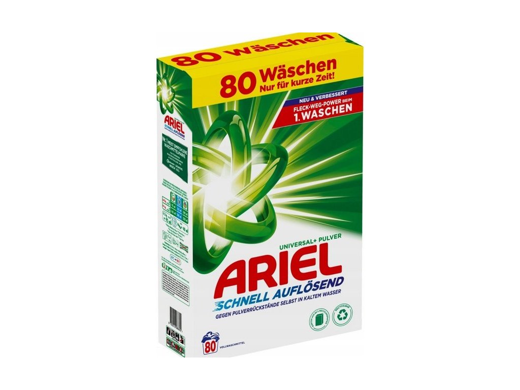 Ariel Universal Waschmittel je speciální prací prášek určený pro všechny typy tkanin, vytvořený s ohledem na komplexní čistotu a účinné odstraňování skvrn. Díky inovativní formuli, která se rychle rozpouští ve vodě, funguje účinně i při nízkých teplotách – od 20 °C a zajišťuje perfektní výsledky již při prvním praní.